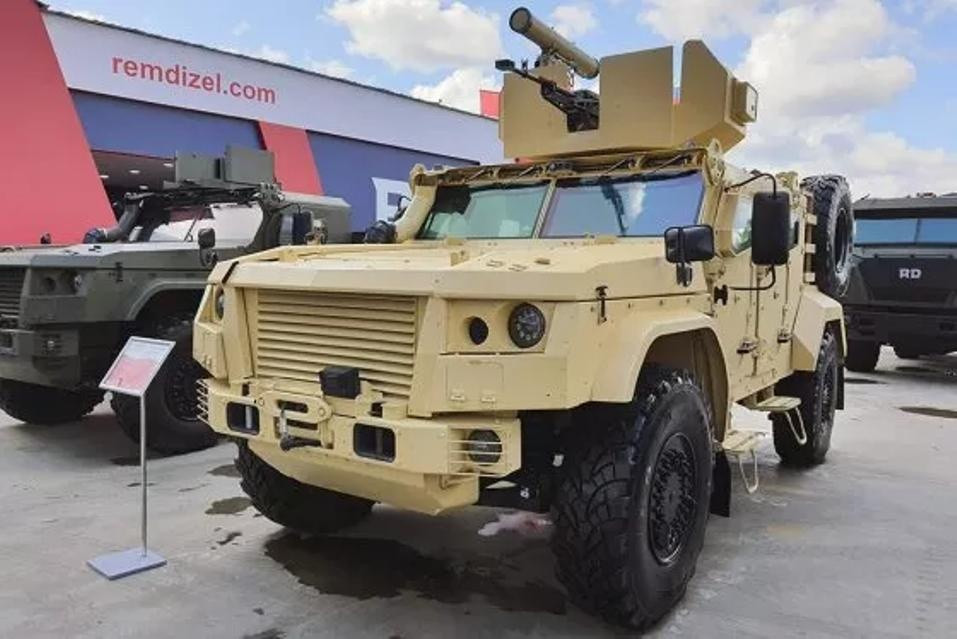 Автомобиль безрамный с V-образным днищем, хорошо защищающим от мин. Он оснащен турелью с 12,7-мм пулеметом "Корд" и ПТРК "Корнет". На корме закреплен 120-мм миномет.