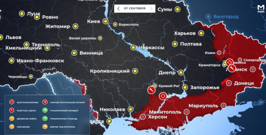 Свежая карта боевых действий на Украине по состоянию на 07.09.2022: актуальные сведения