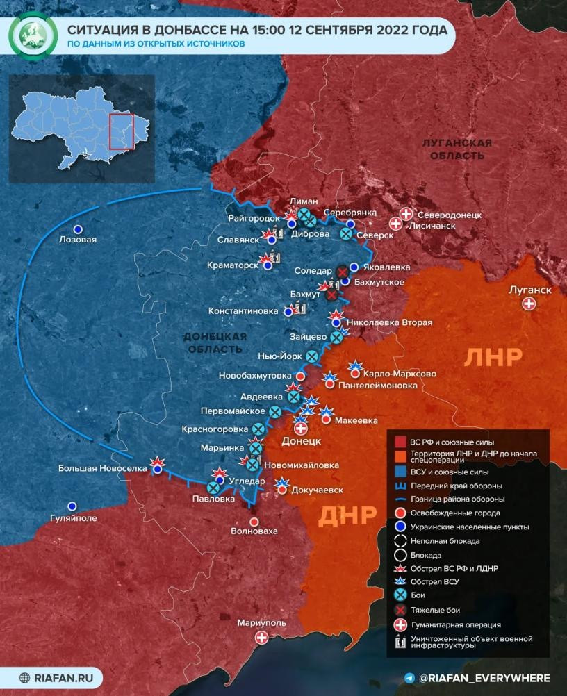 Карта боевых действий на Украине сегодня, 13 сентября 2022. Актуальные данные на 12.09.2022