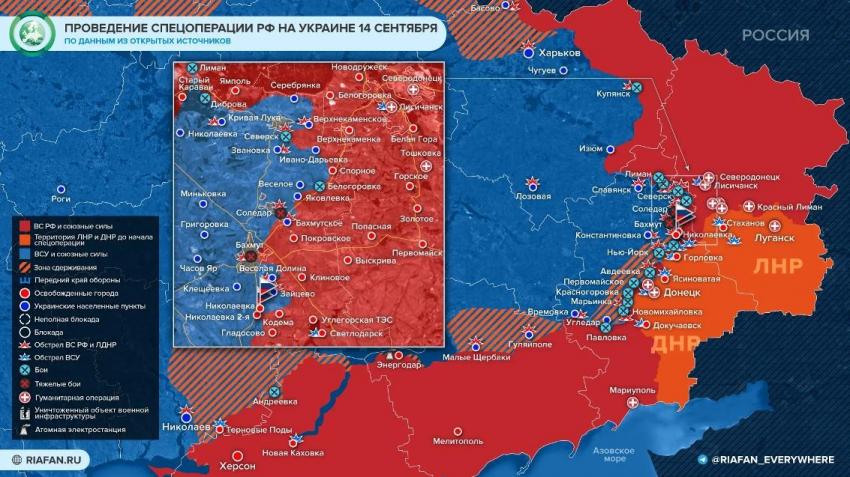 Свежая карта боевых действий на Украине по состоянию на 14 сентября 2022: последние новости