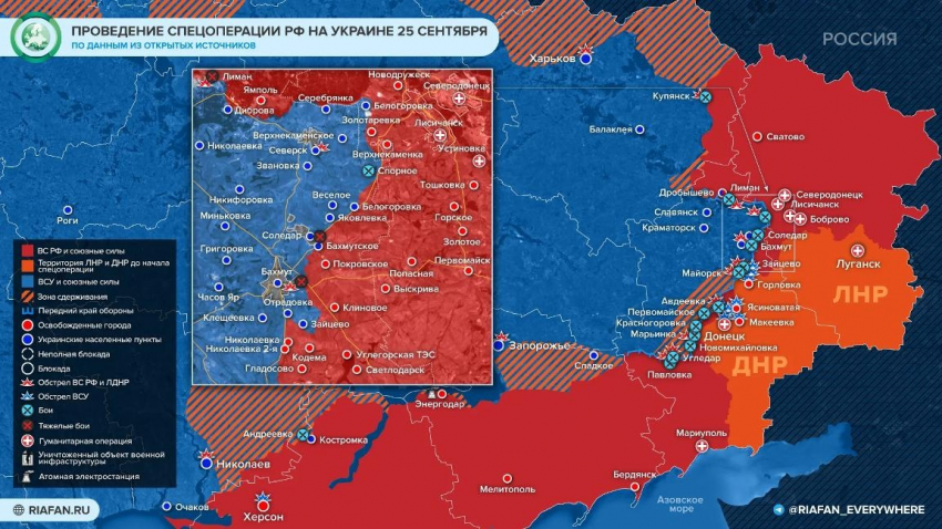 Карта боевых действий на Украине по данным на сегодняшний день: актуальные сведения от 25.09.2022