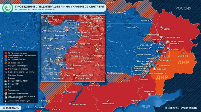 Карта боевых действий на Украине по данным на сегодняшний день: актуальные сведения от 29.09.2022