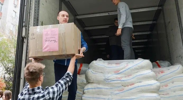 «Вот эта женщина волонтер из Челябинска. Они запустили швейный цех по пошиву термобелья, и нам привезли две газели этих вещей, сейчас все это раздадим. Чтобы вы понимали, что вы там не безразличны в России», — рассказывается в видео в телеграмм-канале.
