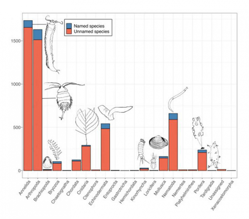 Среди обнаруженных видов – различные сомы (морские огурцы), губки, морские губки, различные кольчатые черви, членистоногие и иглокожие. Более того, подавляющее большинство видов, выявленных на месте исследования, не встречаются больше нигде в мире.
